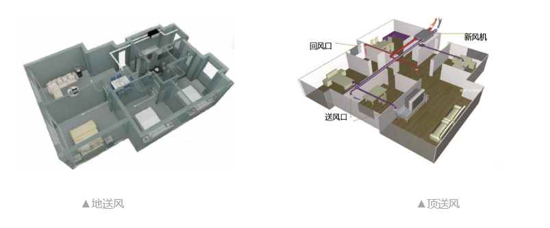 地送風(fēng)模式下,送風(fēng)由位于地板或低端墻面的風(fēng)口來(lái)完成,回風(fēng)則由位于天花板的風(fēng)口完成,這種模式可以避免梁上打太多孔。